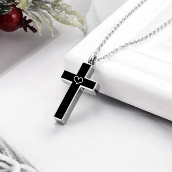 Aanbieding!RVS Ashanger Kruis met mini hartje en zwarte voorkantOorspronkelijke prijs was: € 39,00.Huidige prijs is: € 23,95.Op voorraad