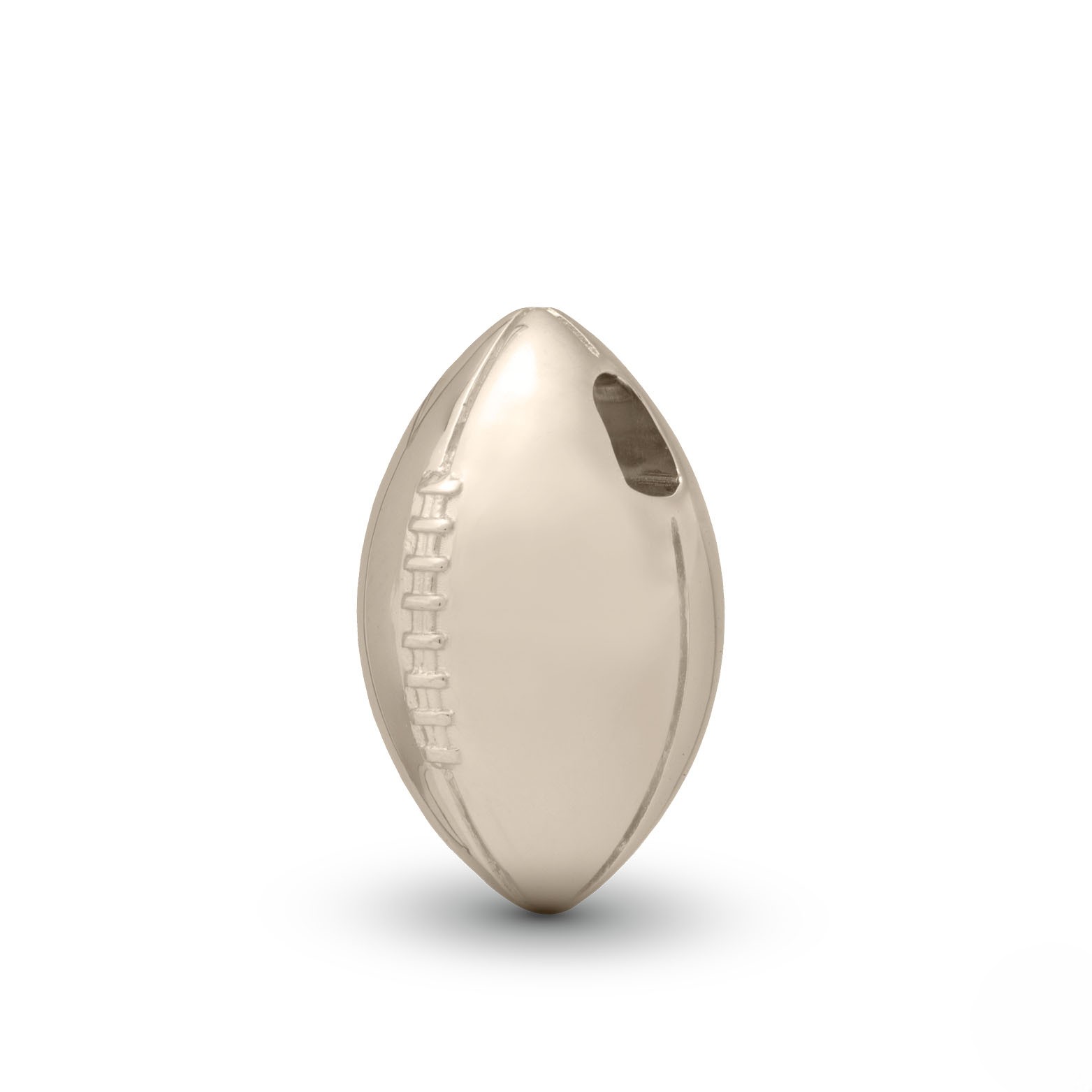 De ovale vorm met de strakke, gladde lijnen en de subtiele groeven langs de zijkant geven dit sieraad een elegante uitstraling. Ook de karakteristieke stiknaden van de bal zijn zichtbaar en maken dit ontwerp extra bijzonder.