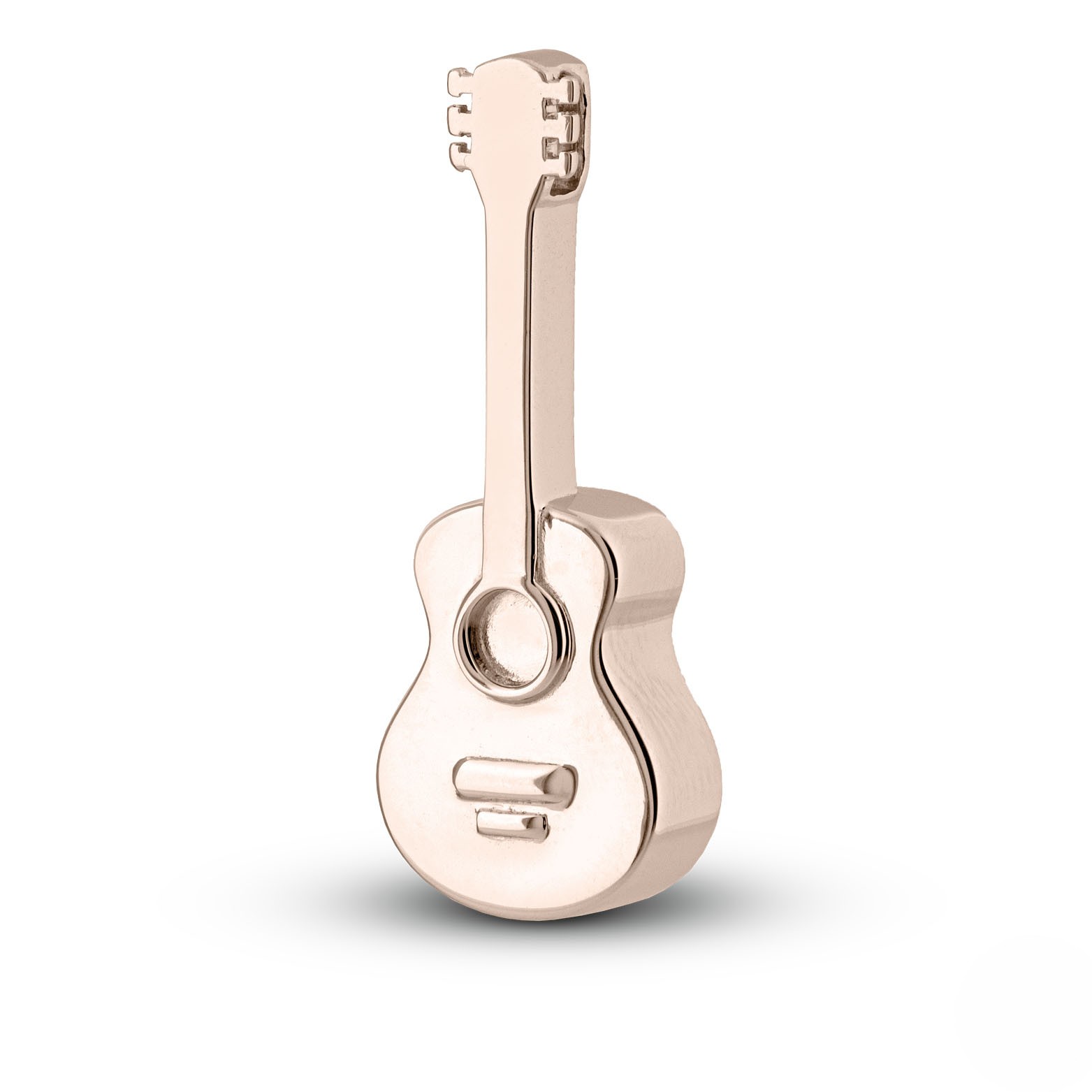 De hanger is ontworpen in de herkenbare vorm van een klassieke gitaar. Het slanke lichaam loopt rond af, terwijl de hals van de gitaar mooi recht en verfijnd is vormgegeven. Elk detail is zorgvuldig uitgewerkt: de snaren zijn subtiel zichtbaar in fijne lijnen en ook de rondingen van de klankkast zijn zorgvuldig glad afgewerkt. Het witgoud geeft de hanger een elegante, lichte glans die luxe en verfijning uitstraalt. Dankzij het compacte formaat is de hanger stijlvol én discreet te dragen.