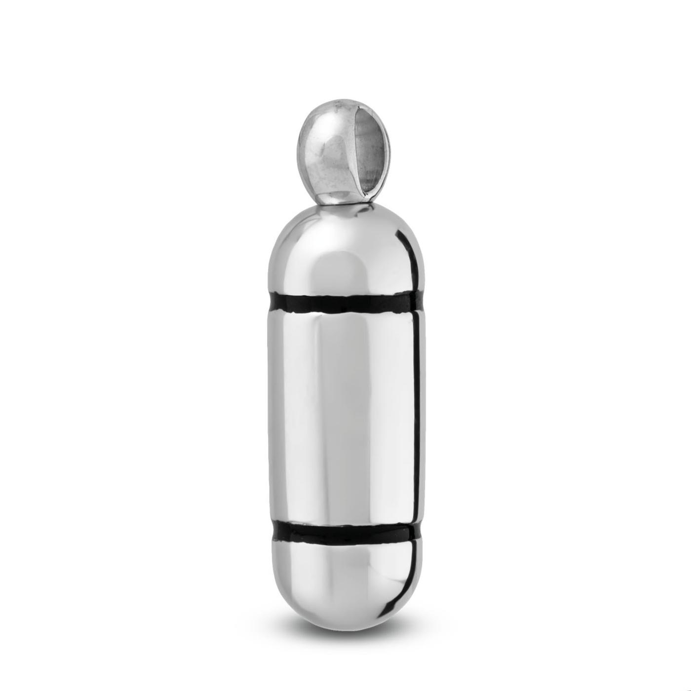 Deze zilveren capsule met zwarte ringen is een discreet en krachtig symbool van herinnering. Het helpt u om de verbondenheid met uw dierbare tastbaar en dichtbij te voelen.