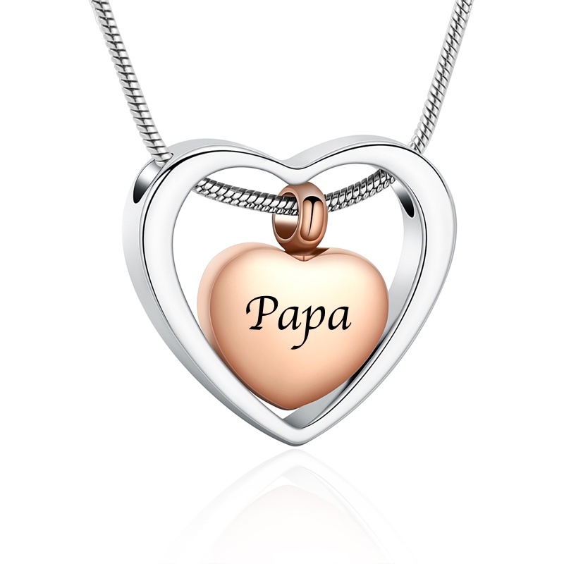 Met de As hanger hart met rose hart – Papa RVS houdt u uw dierbare op een stijlvolle en bijzondere manier altijd dichtbij. Deze hanger is vervaardigd uit hoogwaardig roestvrij staal en heeft een elegant hartvormig ontwerp. U ontvangt de ketting standaard bij het sieraad, zodat u het direct kunt dragen.