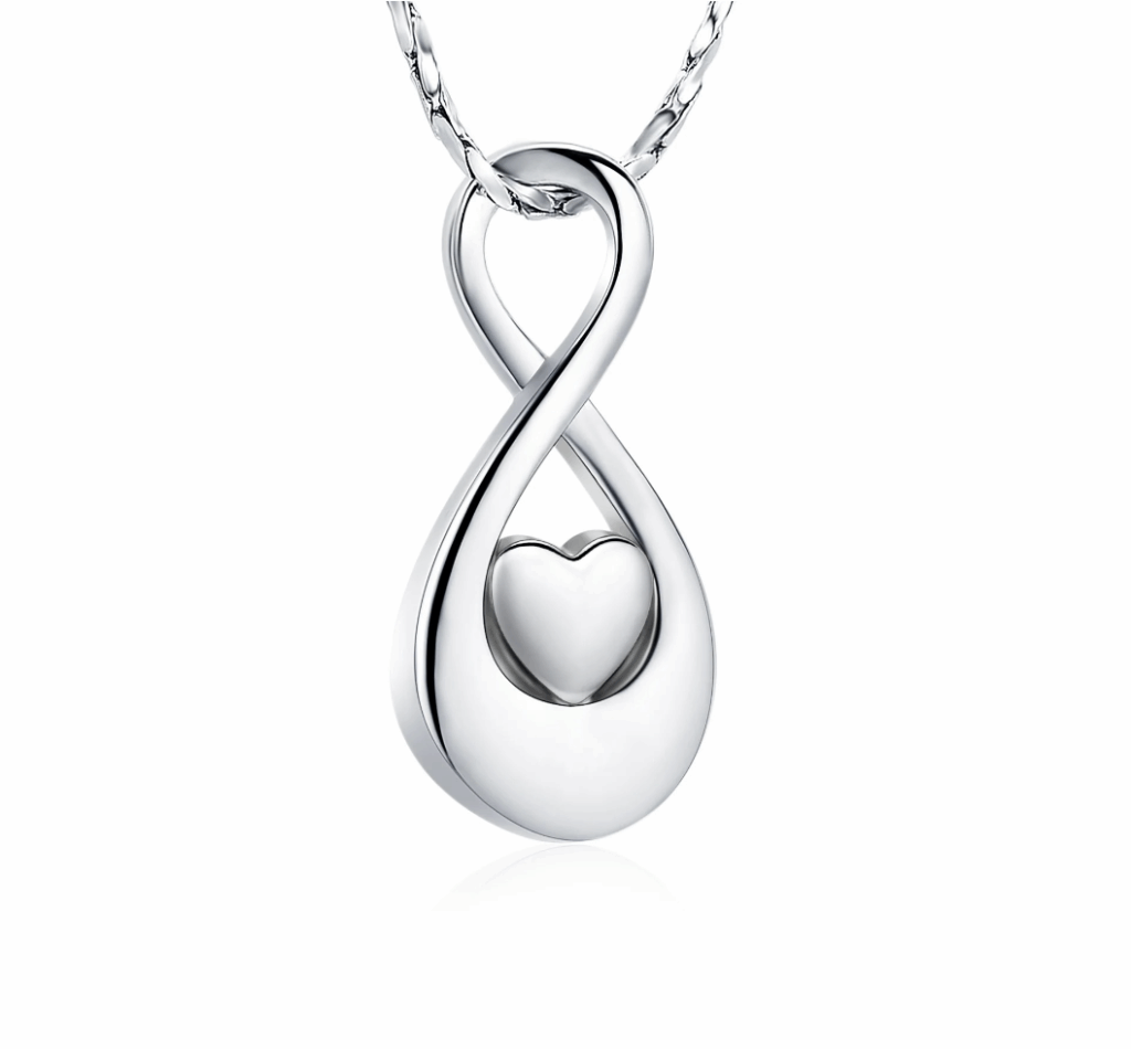 Wilt u uw dierbare altijd dichtbij u dragen? De Ashanger Infinity in hartvorm, uitgevoerd in zilverkleurig roestvrijstaal (RVS), is hiervoor een prachtige keuze. Dit stijlvolle assieraad staat symbool voor oneindigheid, vriendschap en liefde door het bekende infinity-teken. Zo draagt u een blijvende, tastbare herinnering met zich mee.