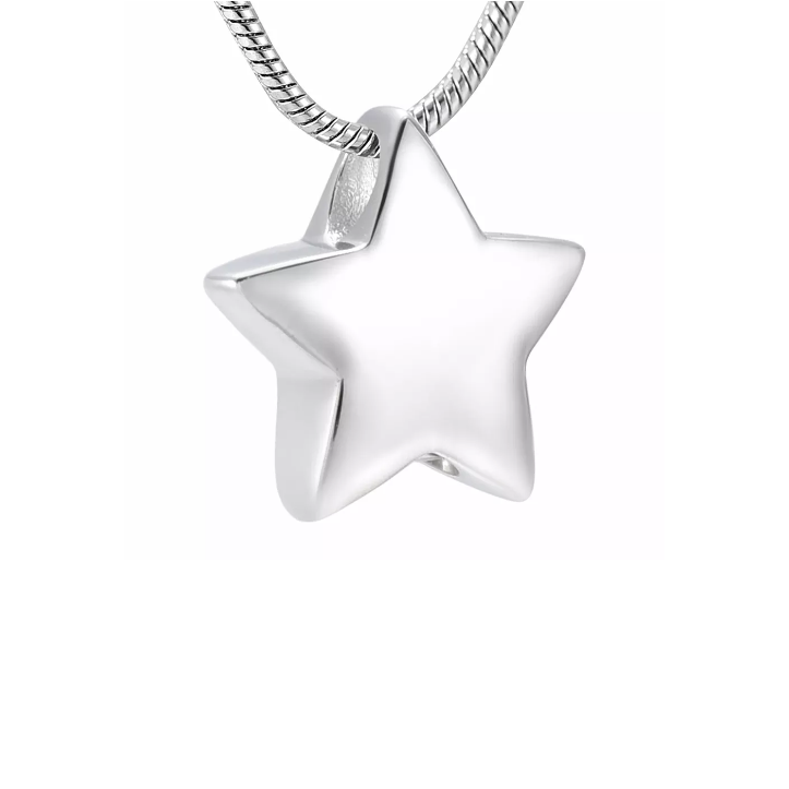 Met de Ashanger Ster edelstaal klein houdt u op een subtiele en mooie manier uw dierbare dichtbij. Dit gedenksieraad bestaat uit sterk edelstaal. De zilverkleurige uitstraling lijkt op echt zilver, maar het materiaal is minder gevoelig voor beschadigingen en blijft lang mooi. Zo heeft u jarenlang plezier van deze duurzame ashanger.