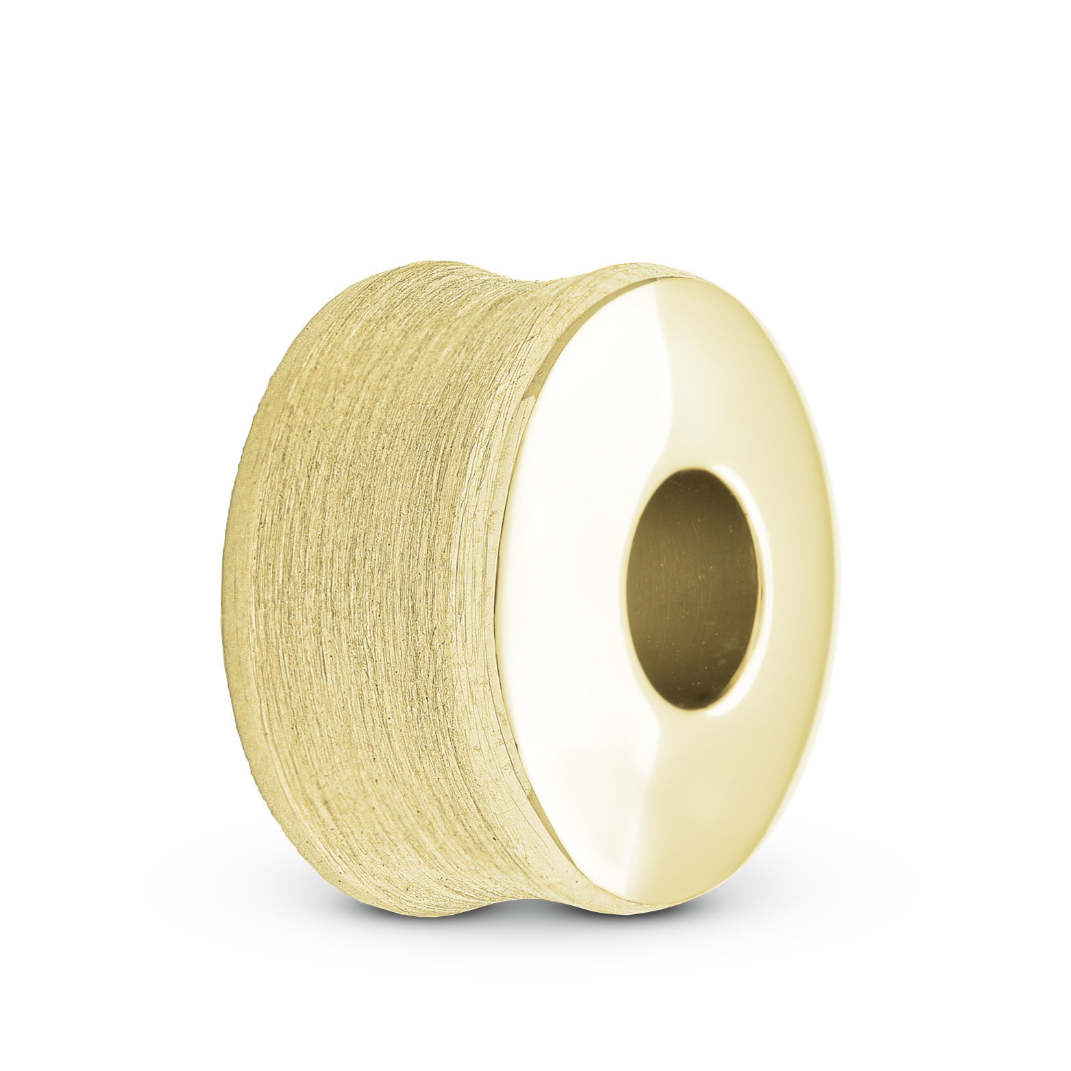 In de gouden asbedel harmonie is een klein, afsluitbaar compartiment verwerkt. Hierin kan een symbolische hoeveelheid as van een dierbare bewaard worden. Het compartiment is discreet weggewerkt, zodat het van buitenaf niet zichtbaar is. De sluiting is stevig en veilig, waardoor de inhoud goed beschermd blijft. Naast as kun je er ook iets anders persoonlijks in bewaren, zoals een plukje haar of zand van een plek die voor jou belangrijk is. Door de duurzame kwaliteit van het goud blijft de bedel mooi, ook bij veelvuldig dragen.