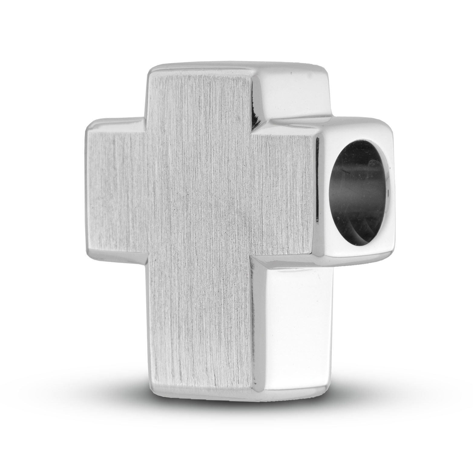 De bedel heeft de vorm van een klassiek Latijns kruis: een verticale lijn met een kortere horizontale lijn. De hoeken zijn strak maar zacht afgerond, waardoor het geheel een vriendelijke uitstraling heeft. De zilveren afwerking is glad en glanzend, wat zorgt voor een tijdloze uitstraling. Het oppervlak reflecteert subtiel het licht, waardoor het sieraad zowel eenvoudig als stijlvol oogt. Dankzij het compacte formaat past de bedel mooi bij een ketting of armband, zonder zwaar te ogen.