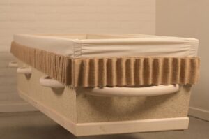 De band wordt om een uitvaartkist of uitvaartmand geplaatst en heeft lusjes waarin bloemen gestoken kunnen worden.