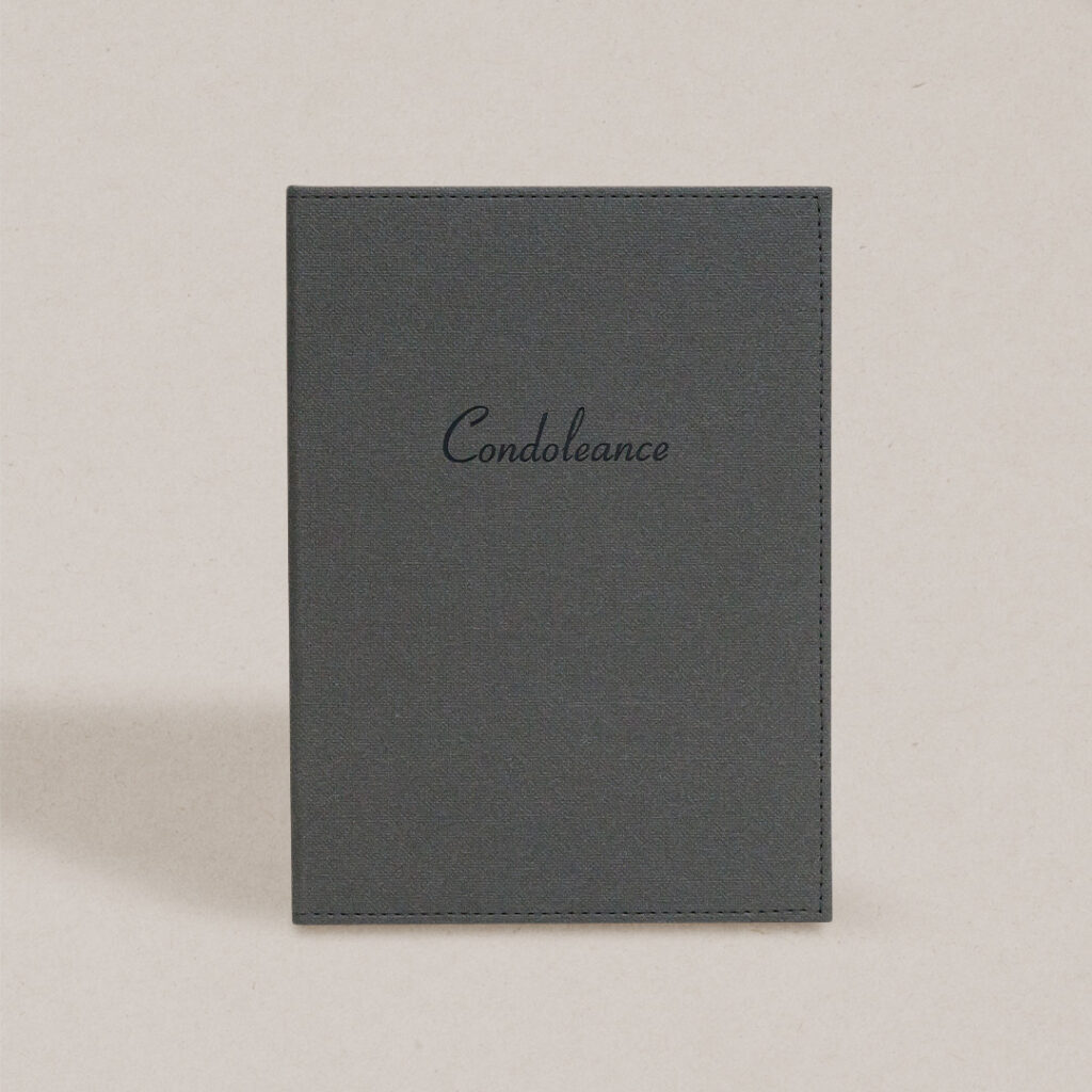 Dit condoleanceboek in de kleur antraciet heeft een luxe en rustige uitstraling. Het is speciaal ontworpen om condoleances, herinneringen en rouwkaarten op een nette en overzichtelijke manier te bewaren.