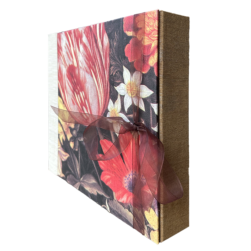 De kaft heeft een rustige, elegante uitstraling. De bloemen zijn subtiel gedrukt, met natuurlijke tinten zoals crème, zachtgroen en pastel. De illustraties lopen vloeiend in elkaar over, waardoor het boek een serene uitstraling heeft. De afwerking voelt glad en stevig aan, zodat het condoleanceboek ook na jarenlang bewaren mooi blijft. De rug is stevig ingebonden, zodat pagina’s goed open blijven liggen wanneer bezoekers hun boodschap schrijven.