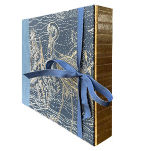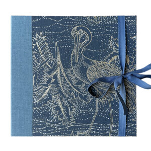 De buitenkant is gemaakt van karton bekleed met een linnenstructuur, wat stevigheid combineert met een natuurlijke uitstraling. De druk van de kraanvogel is subtiel verdiept en voorzien van een glanslaag, wat het motief extra verlicht zonder opzichtig te zijn.