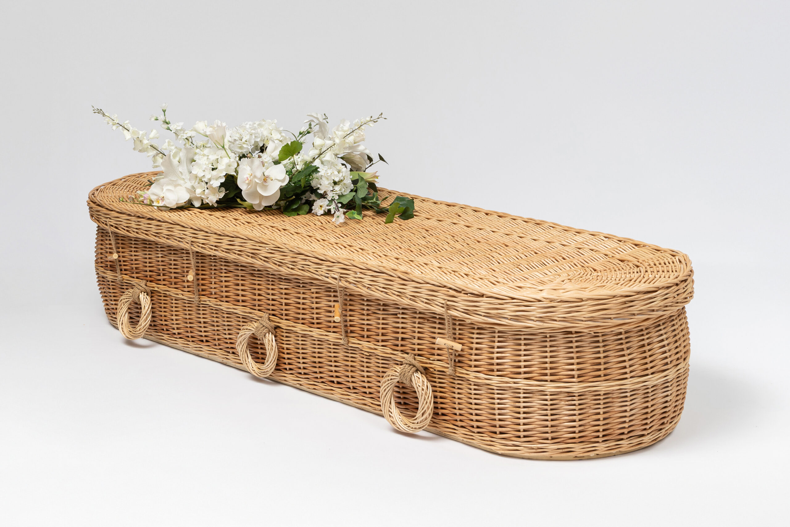 De Rieten uitvaartmand Harmonie XL is met zorg met de hand gevlochten en straalt een zachte, natuurlijke rust uit.