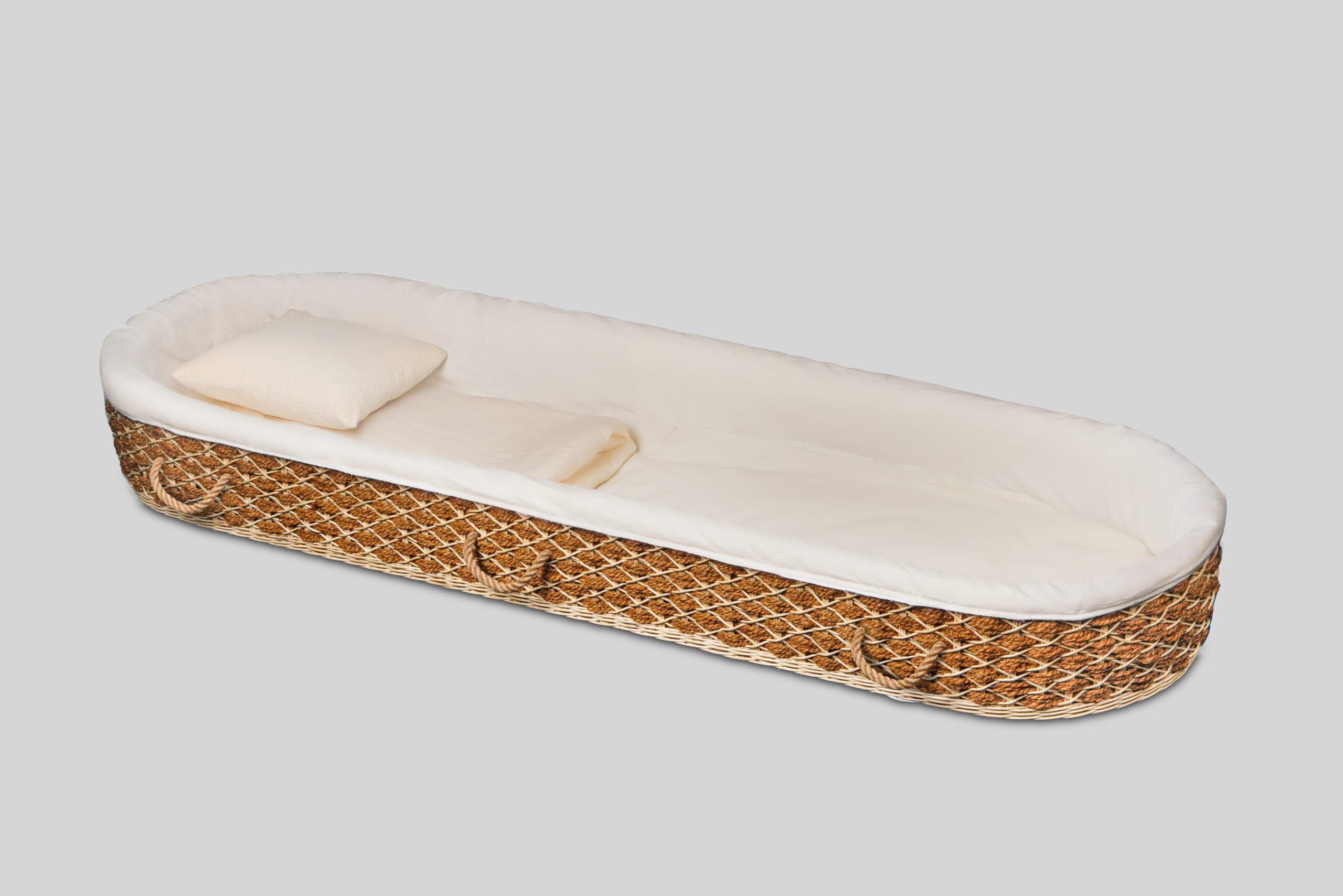 De mand wordt geleverd met een complete katoenen bekleding. Hierdoor ligt de overledene zacht en verzorgd.