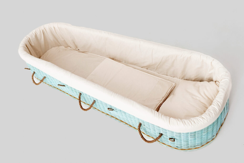 Binnenin is de mand afgewerkt met natuurlijke materialen zoals katoen of linnen. De deksel sluit goed aan en zorgt voor een veilige en waardige rustplaats.