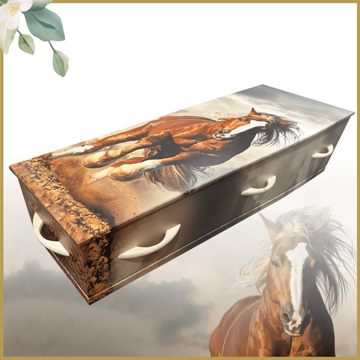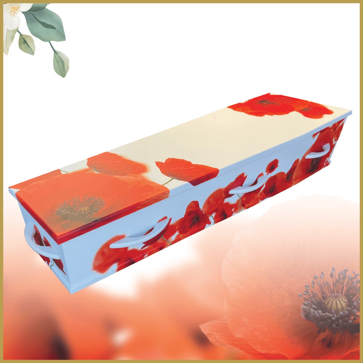Deze kist wordt volledig omwikkeld met een hoogwaardige folie, waardoor er talloze mogelijkheden ontstaan voor kleur, motief en symbolische details. Het resultaat is een kist die niet alleen rust en waardigheid uitstraalt, maar ook het karakter van de overledene weerspiegelt.