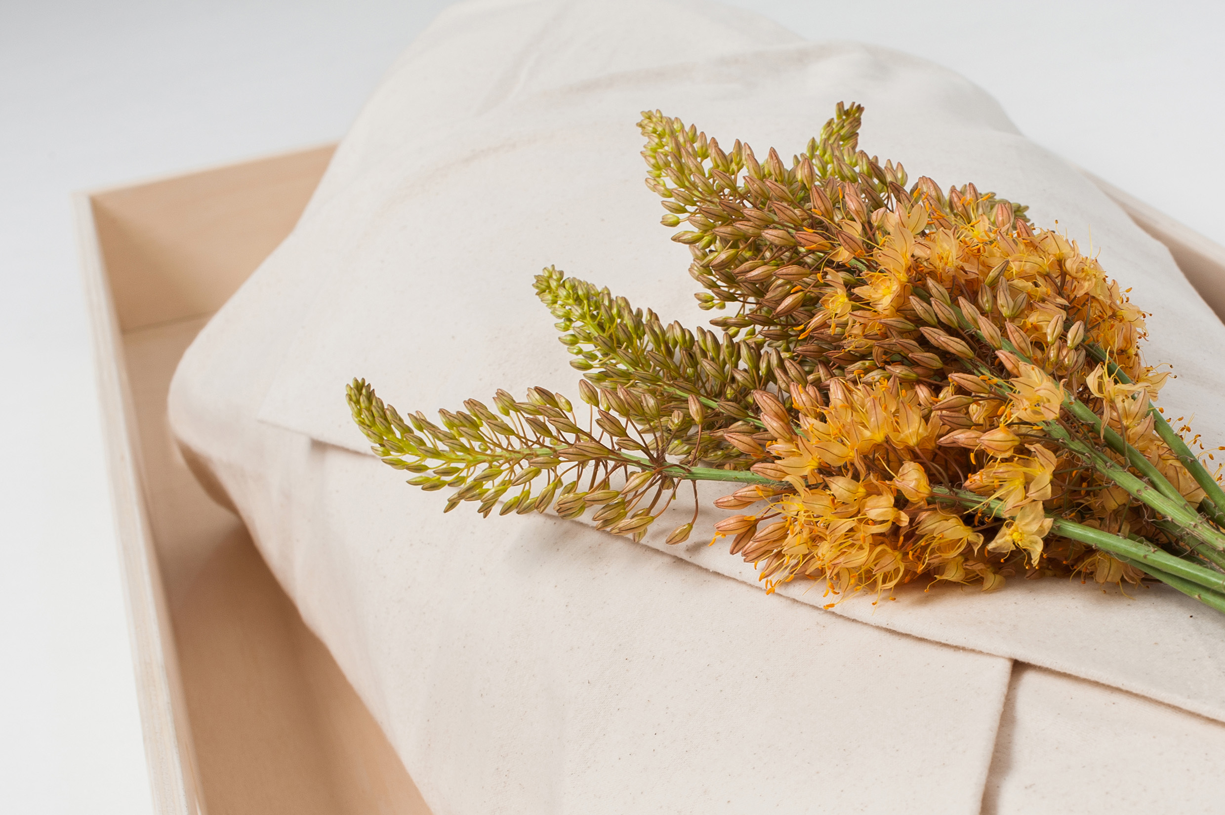 Het zachte materiaal maakt het mogelijk om ook tijdens het afscheid, bij een ceremonie of opbaring, een warme en serene uitstraling te behouden.
