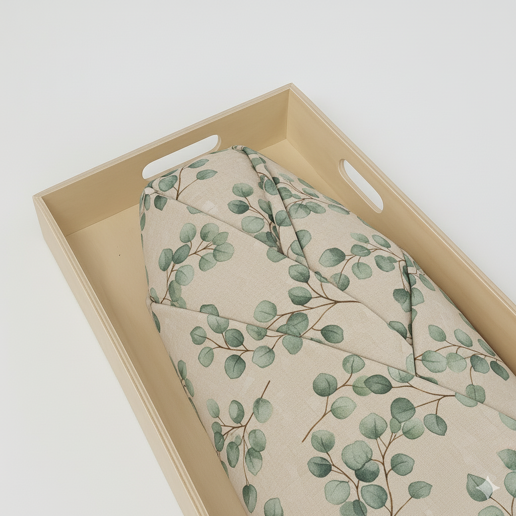 Breng rust en natuurlijke sereniteit in het afscheid met de lijkwade eucalyptus. Deze elegante wade is vervaardigd van zachte katoenmix met een linnenachtige uitstraling. De wade is bedrukt met een verfijnd eucalyptusmotief in aquarelstijl. De groene tinten en sierlijke takjes symboliseren leven, rust en verbondenheid met de natuur. Dankzij de neutrale, warme uitstraling en natuurlijke materialen past deze wade bij een ingetogen en stijlvol afscheid.