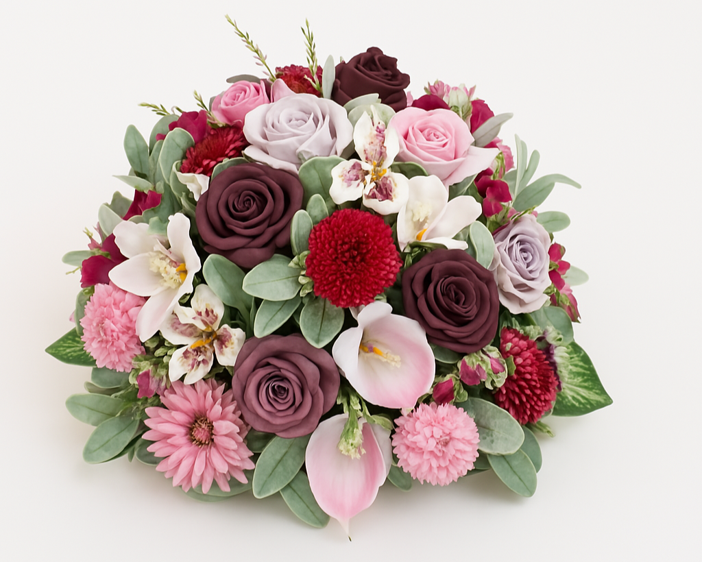 Dit ronde, symmetrische stuk straalt rust en harmonie uit. Het is een veilige, liefdevolle keuze wanneer je een evenwichtig geheel wilt neerleggen als laatste groet. Wie een rouwstuk wil bestellen dat ingetogen en stijlvol is, vindt in de biedermeier een zachte troost.