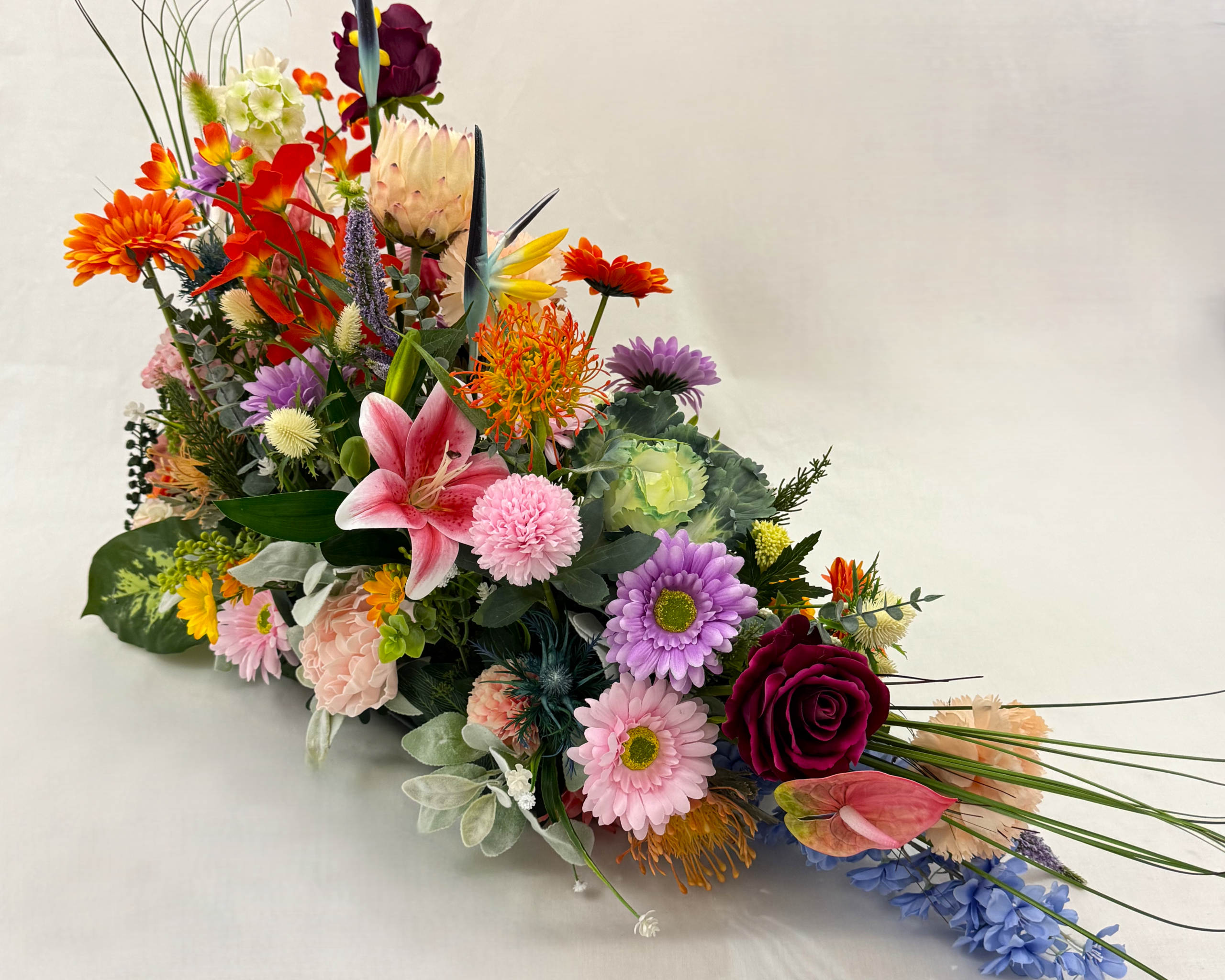 Dit rouwstuk is bijzonder geschikt voor op of naast de kist en wordt vaak gekozen door mensen die een zacht, emotioneel en stijlvol gebaar willen maken. Voor een rouwstuk kiezen in de druppelvorm is een rouwstuk kiezen dat relatief veel rouwbloemen bevat.