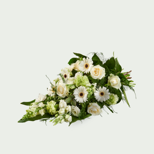 Maar u kunt ook kiezen voor een klein rouwboeket voor op de kist. Dit kan een rouwboeket zijn met allemaal verschillende kleuren – vrolijk of juist niet – of een rouwboeket in één kleur of één kleurtint. Wilt u liever een rouwboeket met alleen maar witte bloemen? Ook dat is mogelijk.