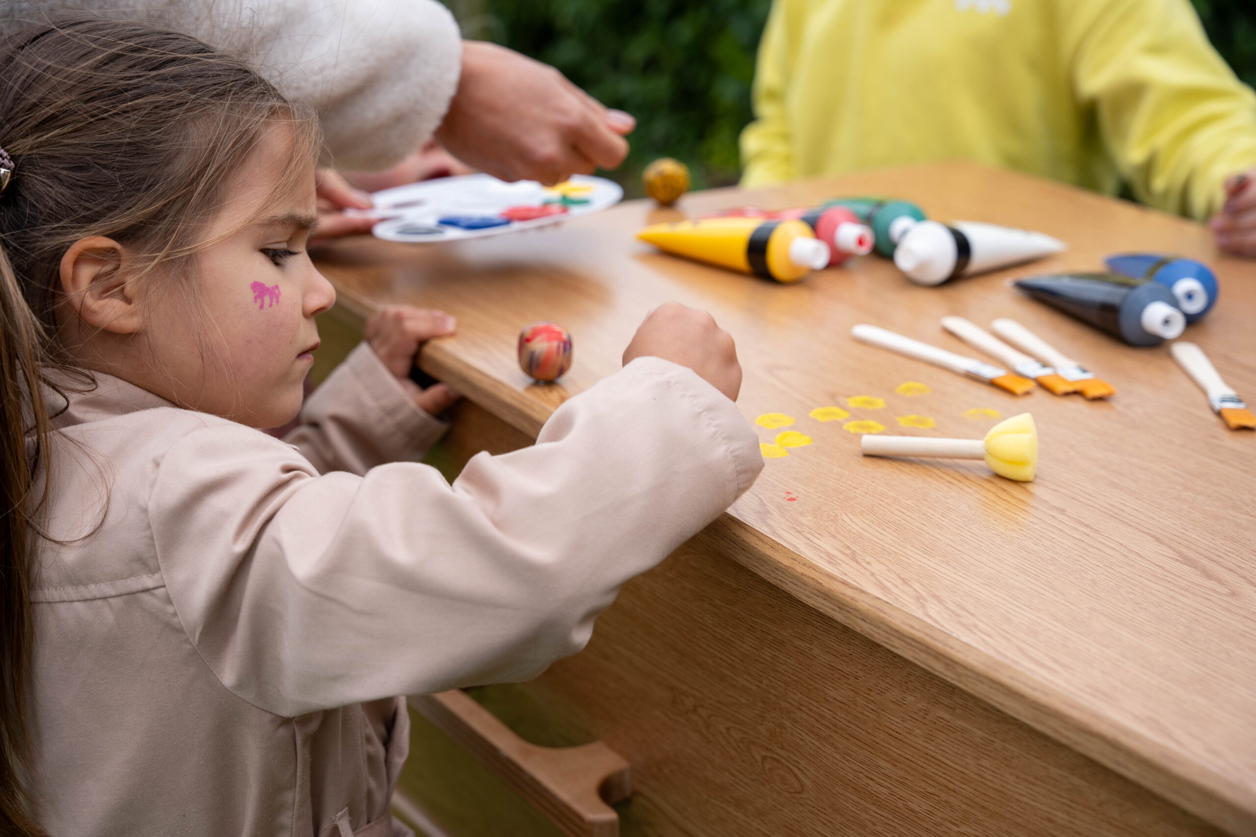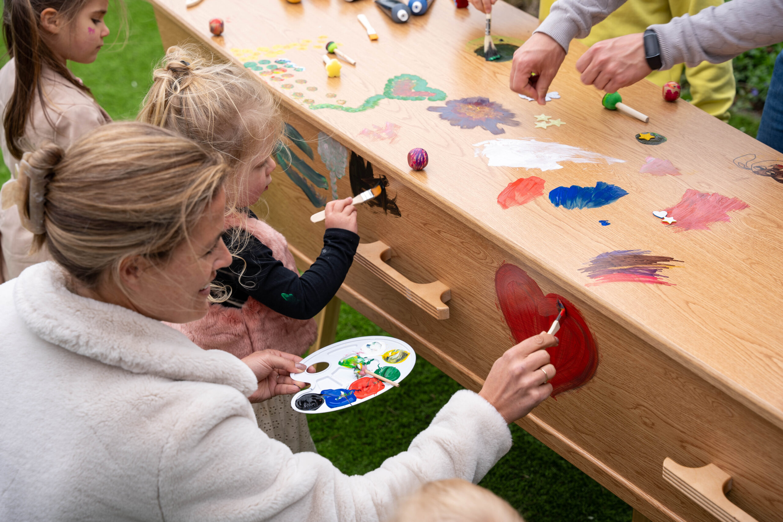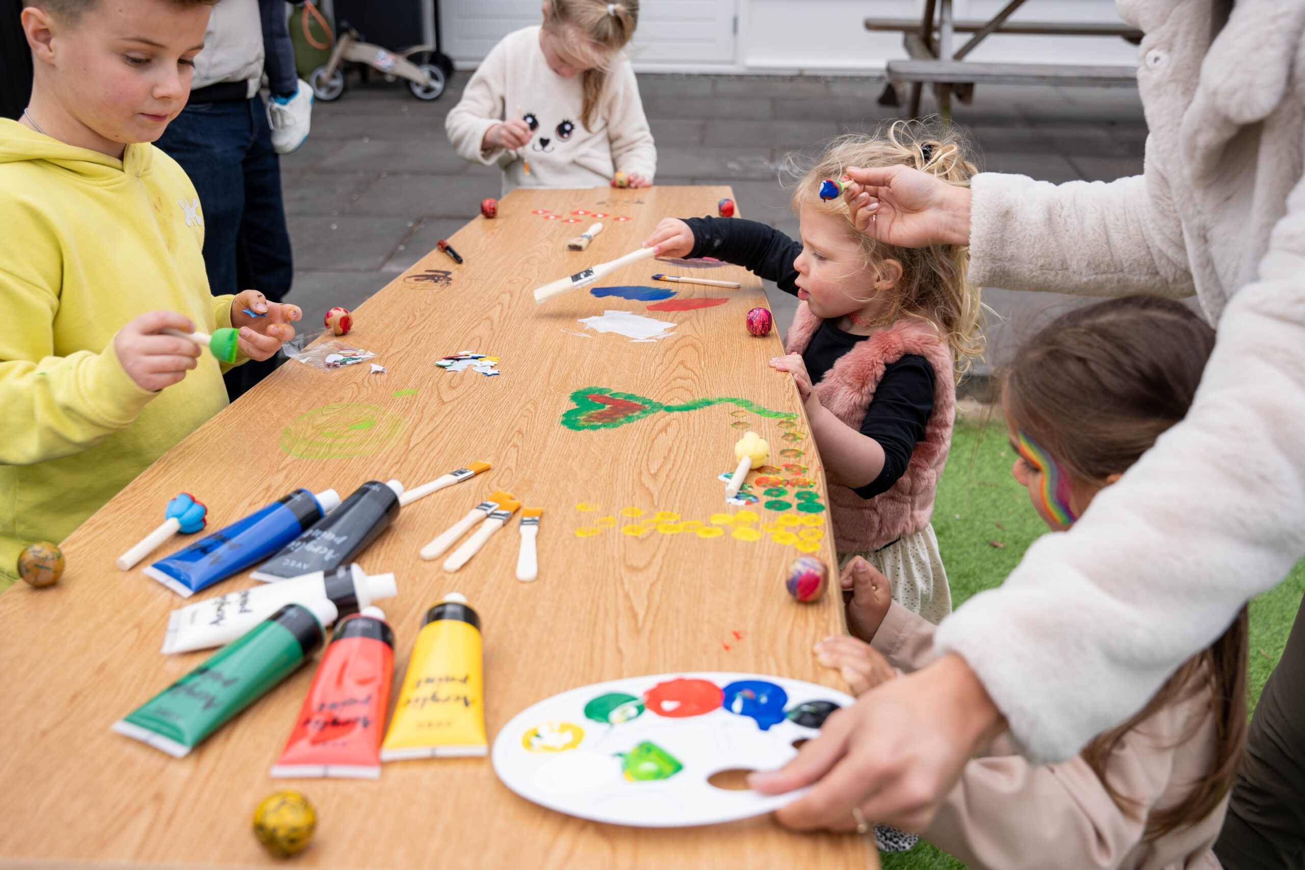 De vorm van de penselen varieert: er is een smalle kwast voor details en een bredere borstel voor grotere delen. Zo kunnen namen, hartjes of bloemen met precisie worden aangebracht. De verf droogt gelijkmatig op en behoudt zijn kleur, ook na verloop van tijd.