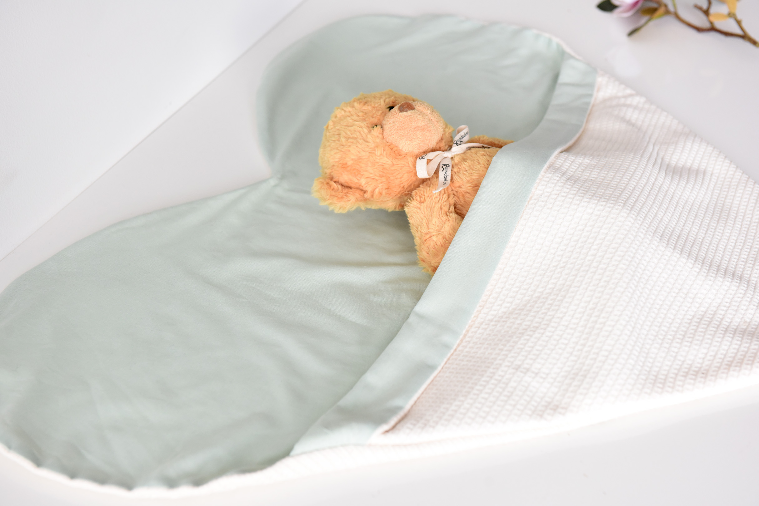 De hartvorm van de Baby Wade Hart is veel meer dan alleen een ontwerpkeuze. Het hart is een universeel symbool van liefde, verbondenheid en zorg. In deze wade ligt het kindje letterlijk omringd door liefde. Voor ouders biedt dit een troostend gevoel – het idee dat hun kindje geborgen rust in het midden van een hart.