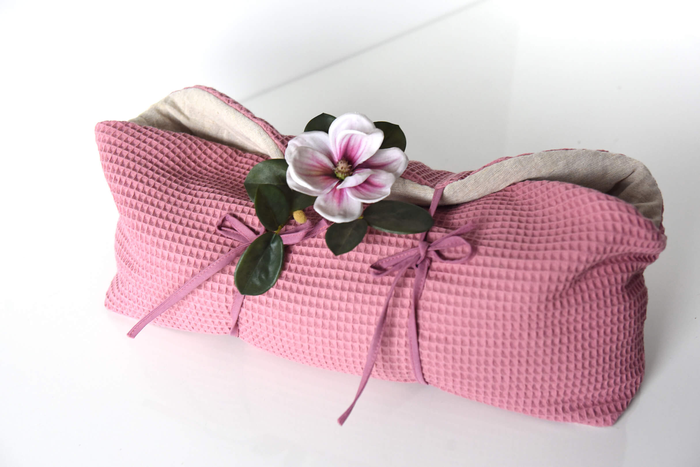 De Babycocon roze is met veel aandacht ontworpen als een tedere en warme omhulling voor een overleden baby. Het ontwerp straalt rust en zachtheid uit, met ronde vormen die geborgenheid symboliseren. De buitenzijde is gemaakt van een zachte wafelstof in een warme oudroze tint. Deze stof heeft een subtiele structuur die rust geeft aan het oog en prettig aanvoelt bij aanraking. De afgeronde vorm van de cocon zorgt voor een veilige, liefdevolle uitstraling – alsof het kindje nog één keer zacht wordt omhuld.