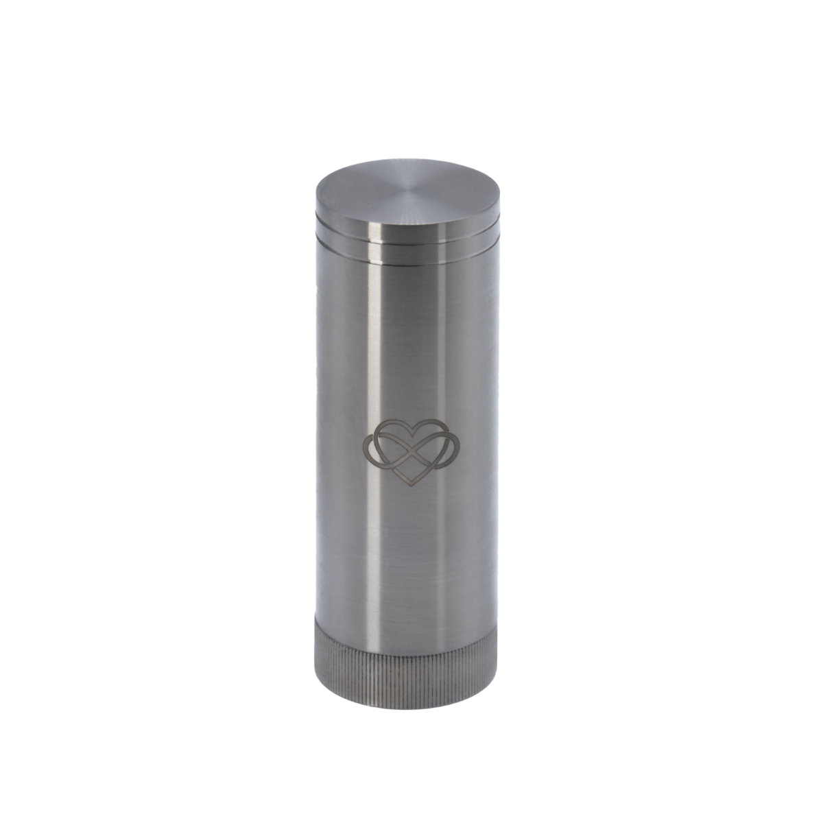 De Urn Sofia is een elegante mini urn van duurzaam roestvrij staal, ontworpen om een dierbare op een ingetogen en liefdevolle manier te herdenken. Op de voorkant is een verfijnd gravure van een hart met infinity-symbool zichtbaar – een krachtig teken van eeuwige liefde en verbondenheid.