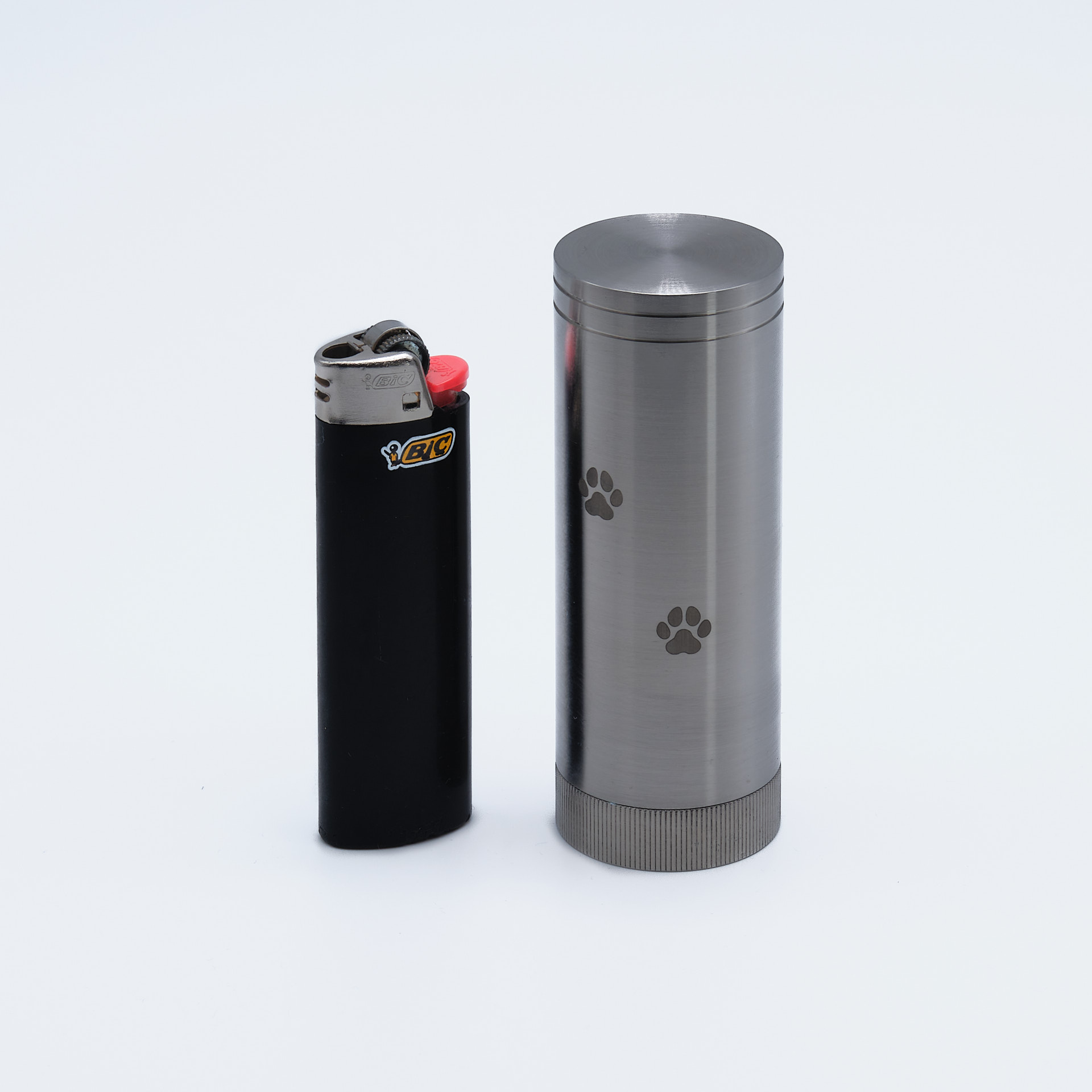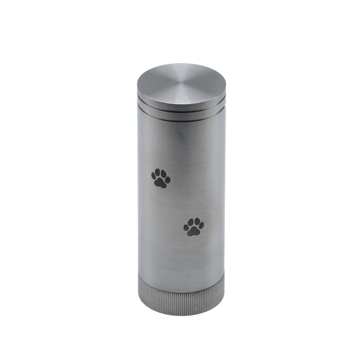 De Urn Baku is een compacte en moderne mini urn van hoogwaardig roestvrij staal, speciaal ontworpen voor het koesteren van een klein deel van de as van een geliefd huisdier. Op de urn zijn subtiele pootafdrukken gegraveerd, een tedere herinnering aan trouwe viervoeters die altijd een plekje in uw hart behouden.
